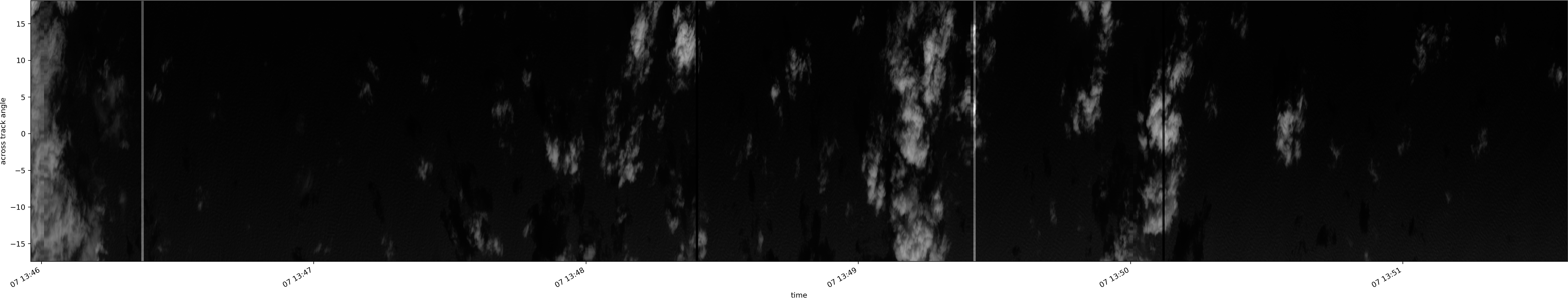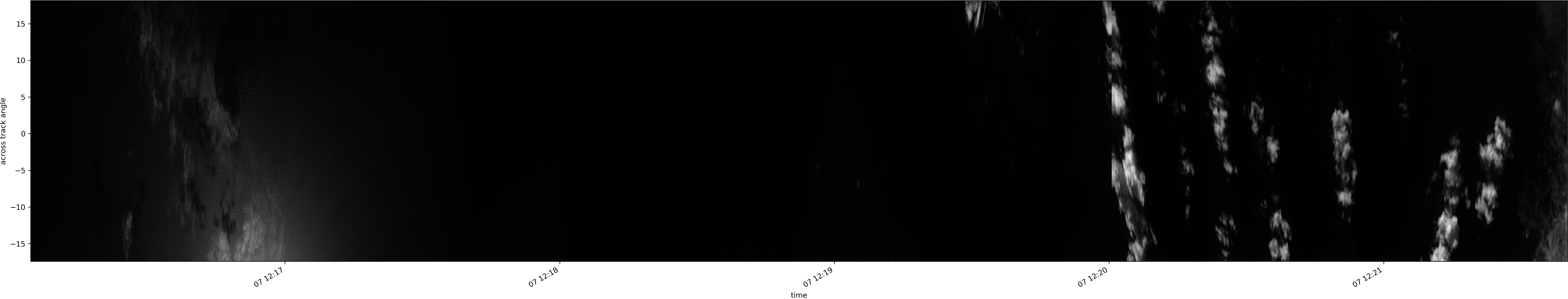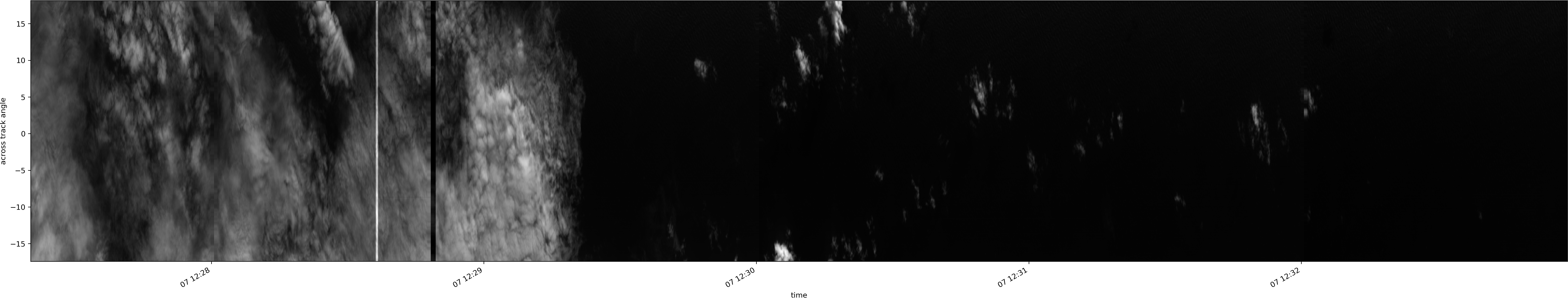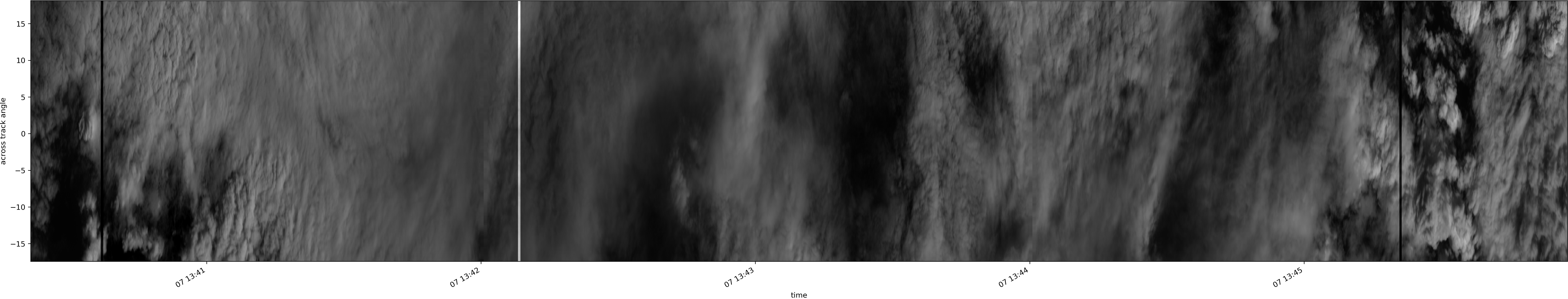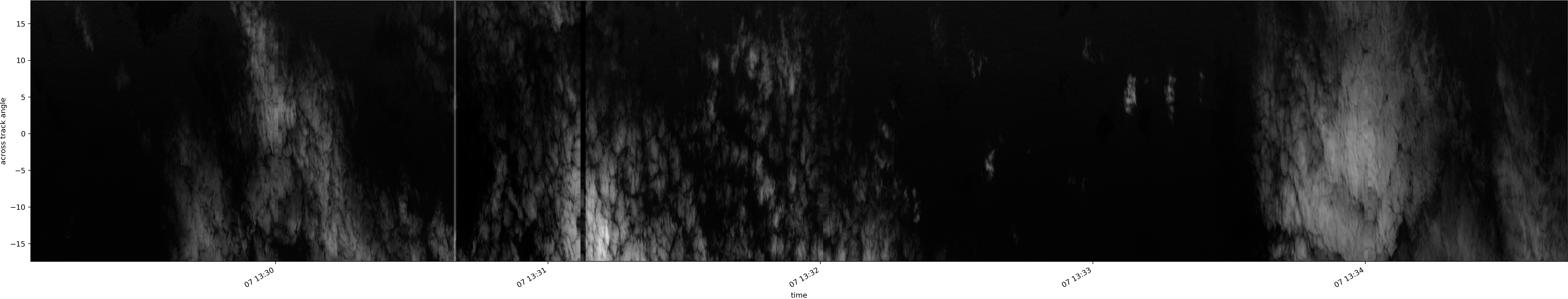 Note that due to the scanning nature of the sensor, the across-track axis is angular resolved while the along-track axis (time-axis) is linear along the flight track.