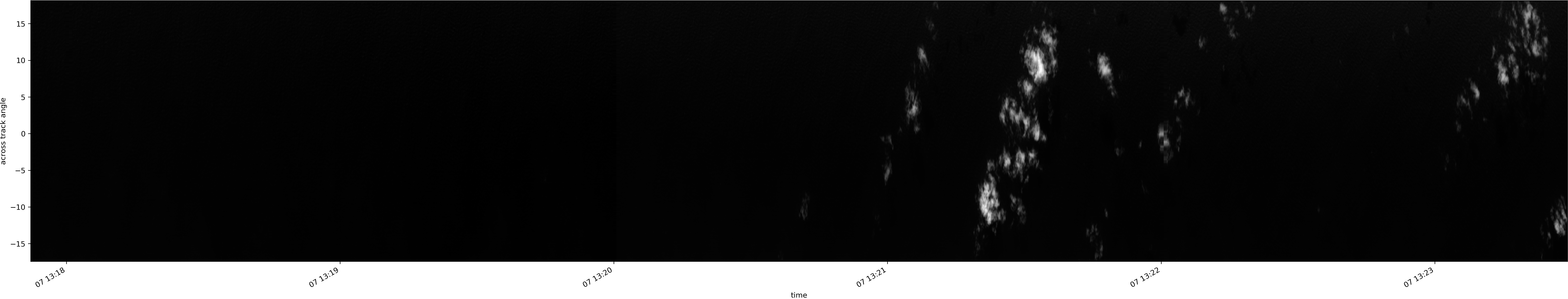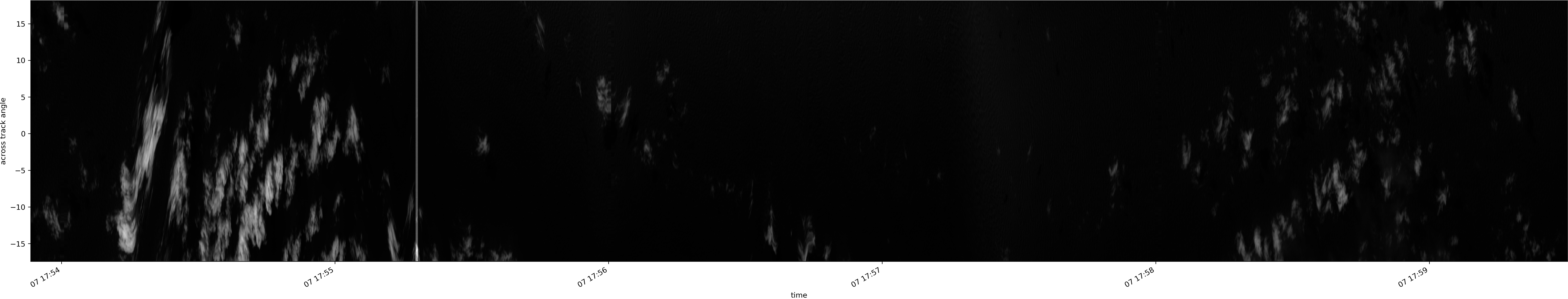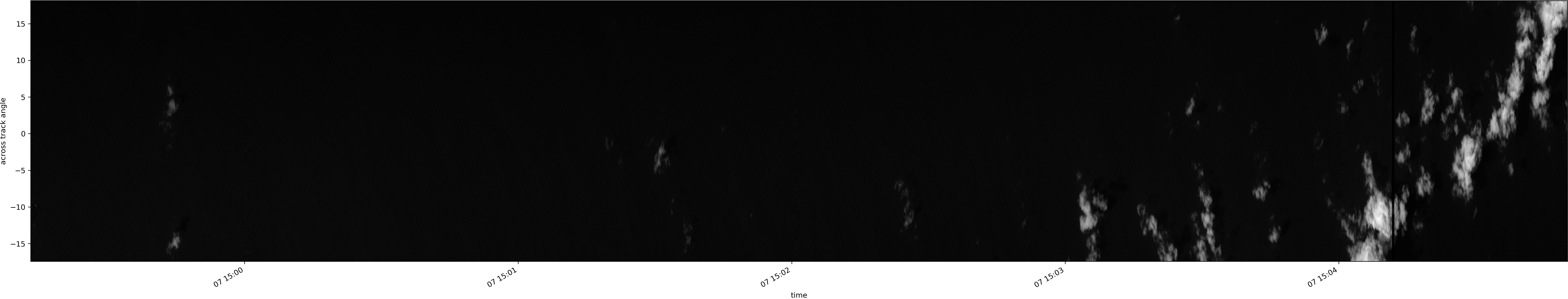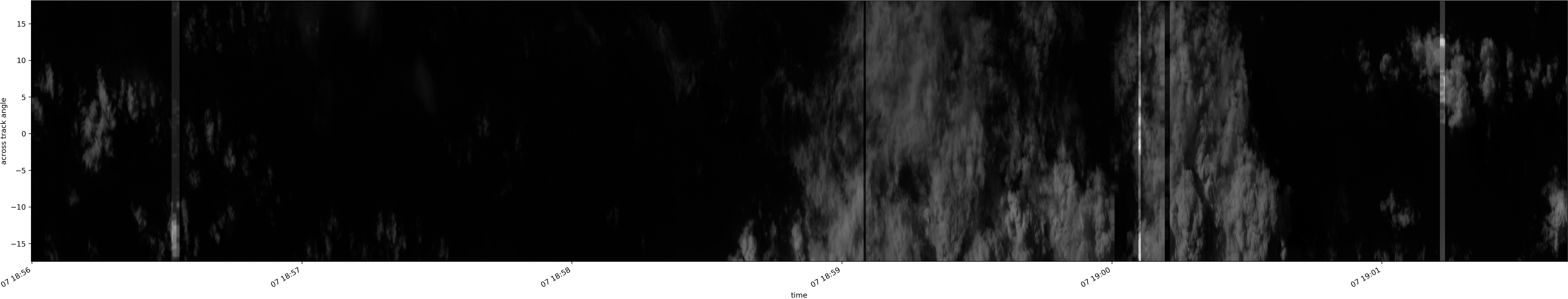 Note that due to the scanning nature of the sensor, the across-track axis is angular resolved while the along-track axis (time-axis) is linear along the flight track.