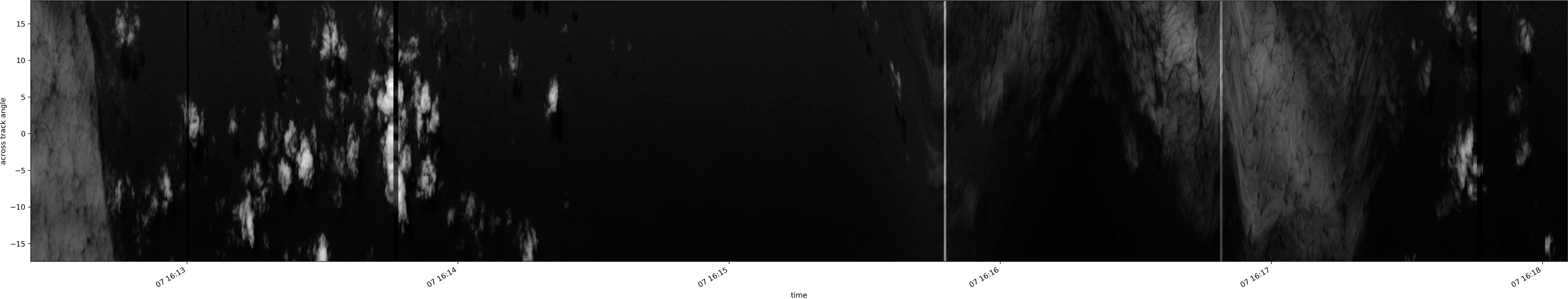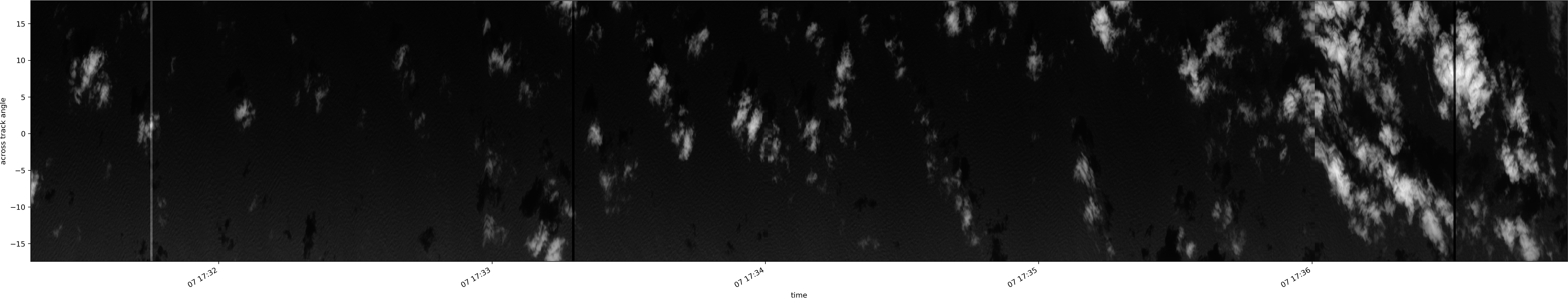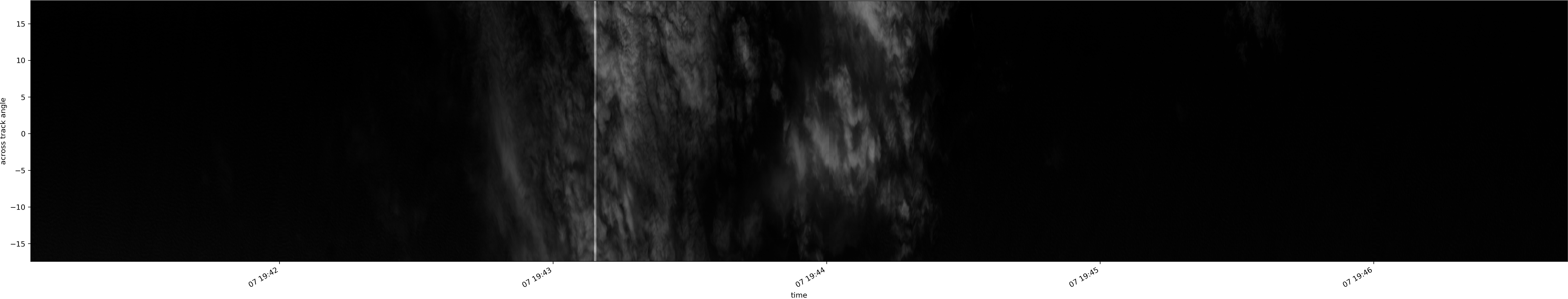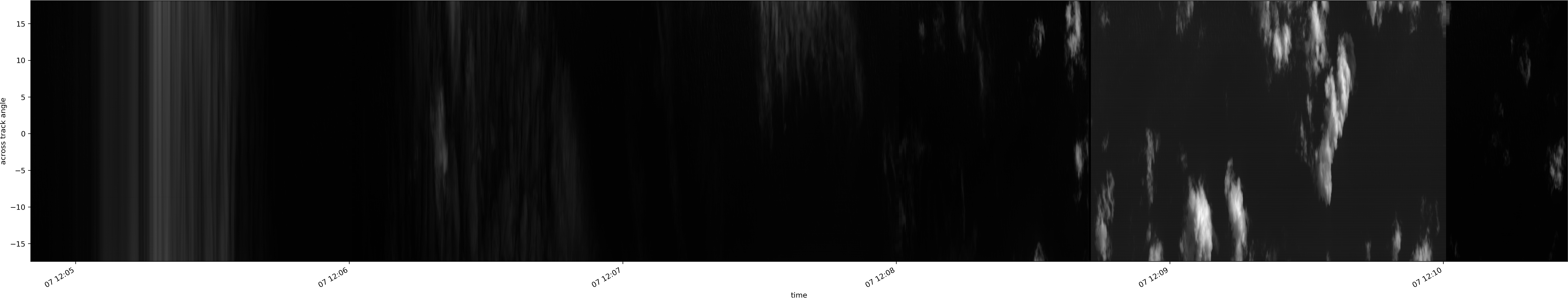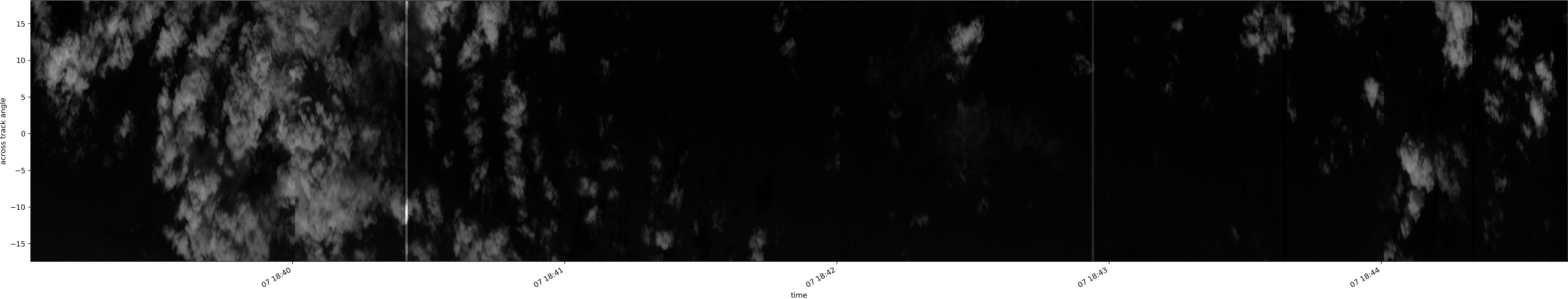 Note that due to the scanning nature of the sensor, the across-track axis is angular resolved while the along-track axis (time-axis) is linear along the flight track.