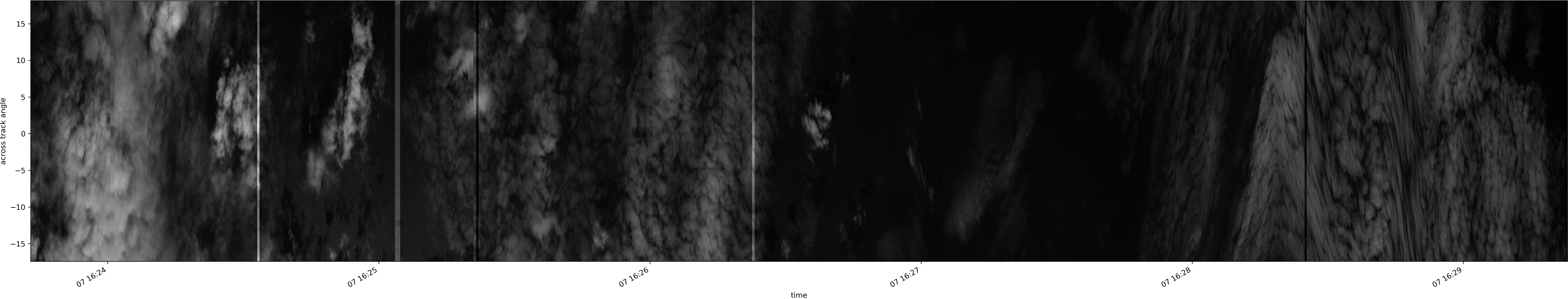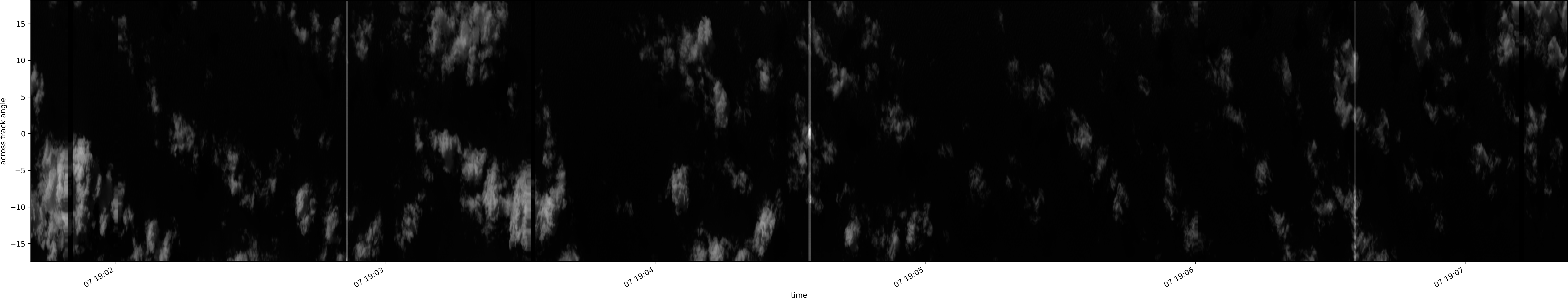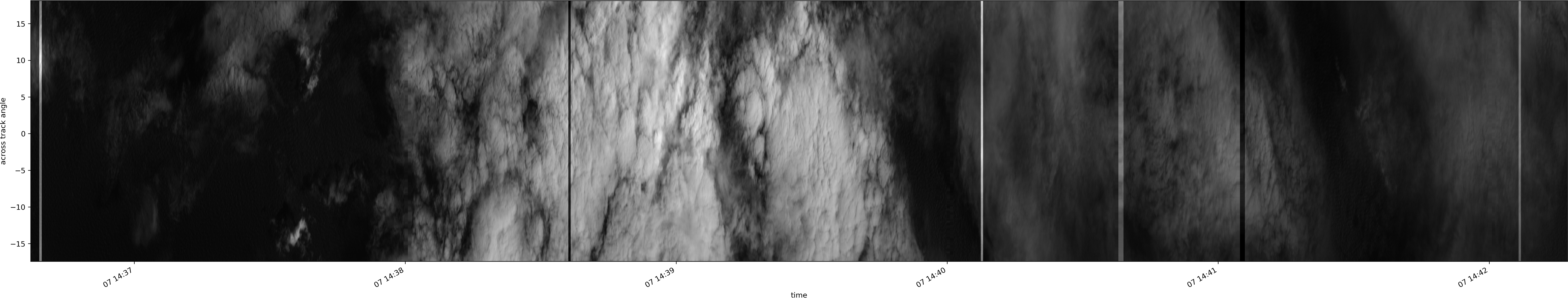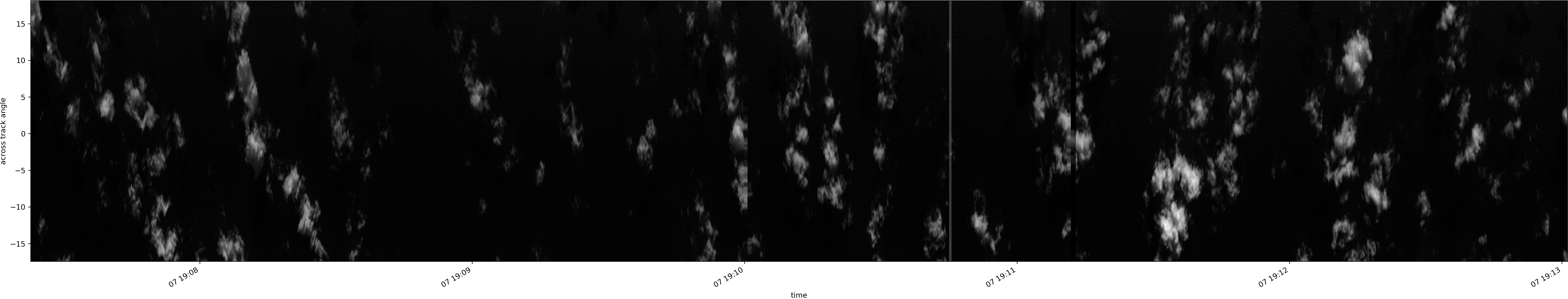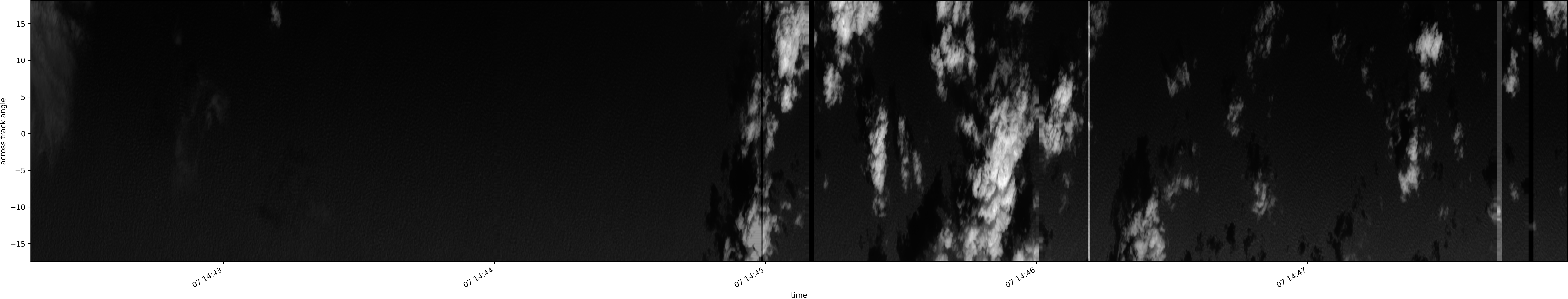 Note that due to the scanning nature of the sensor, the across-track axis is angular resolved while the along-track axis (time-axis) is linear along the flight track.