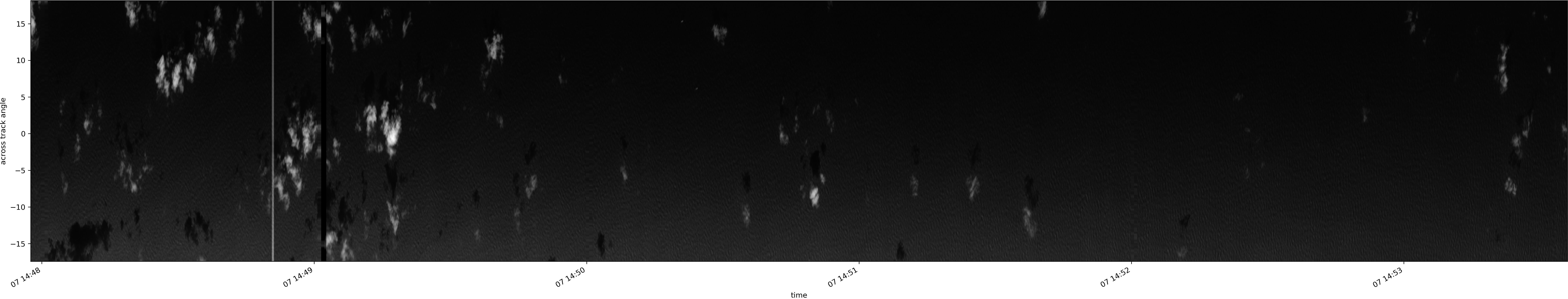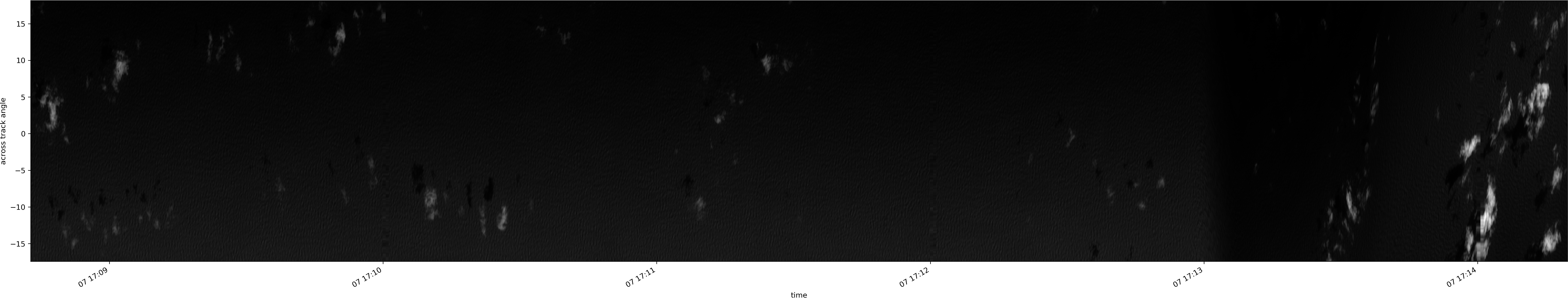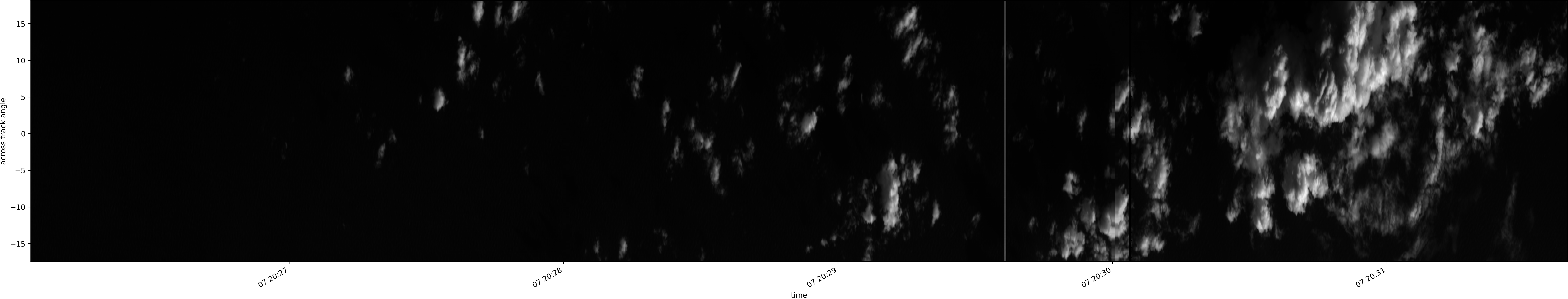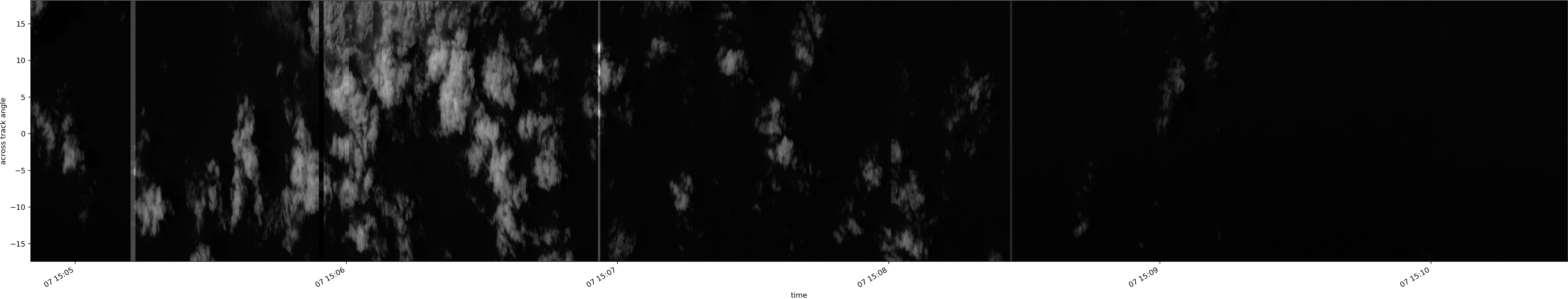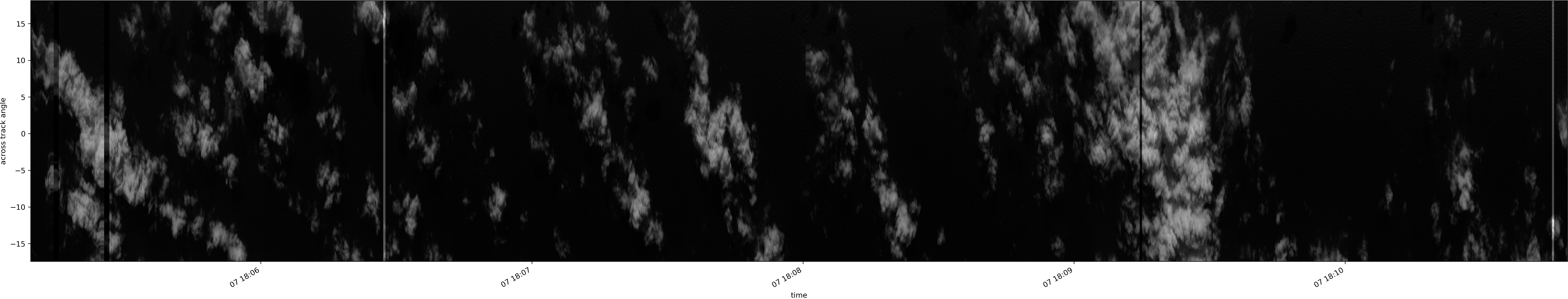 Note that due to the scanning nature of the sensor, the across-track axis is angular resolved while the along-track axis (time-axis) is linear along the flight track.