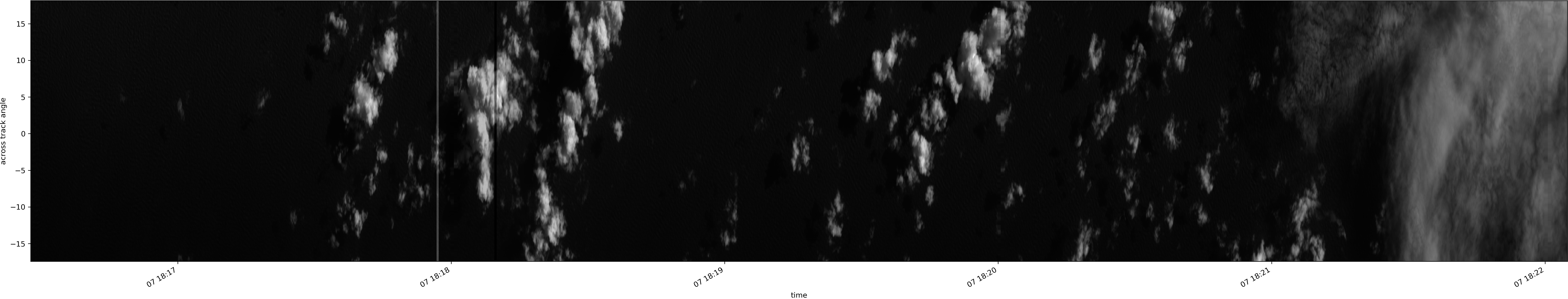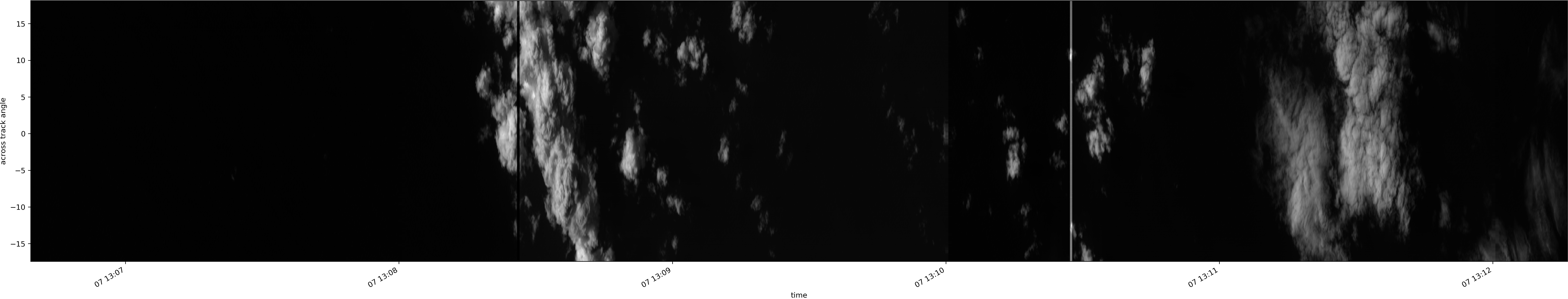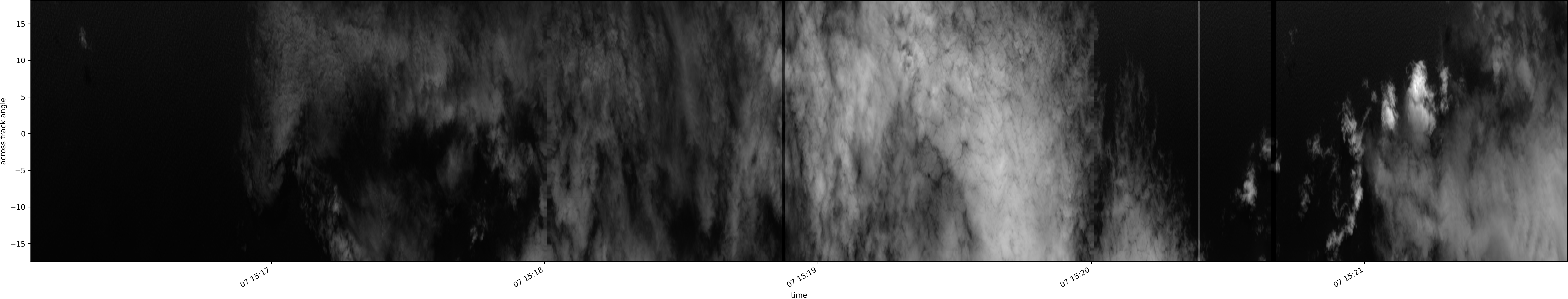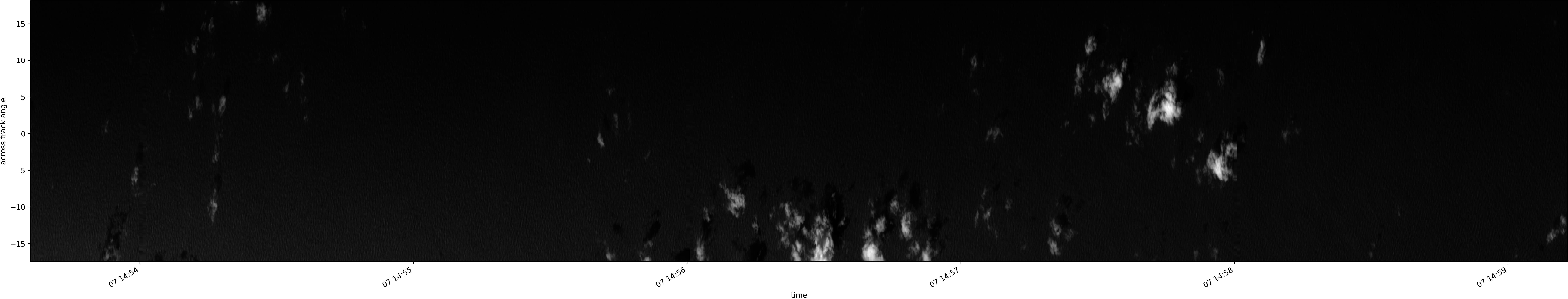 Note that due to the scanning nature of the sensor, the across-track axis is angular resolved while the along-track axis (time-axis) is linear along the flight track.