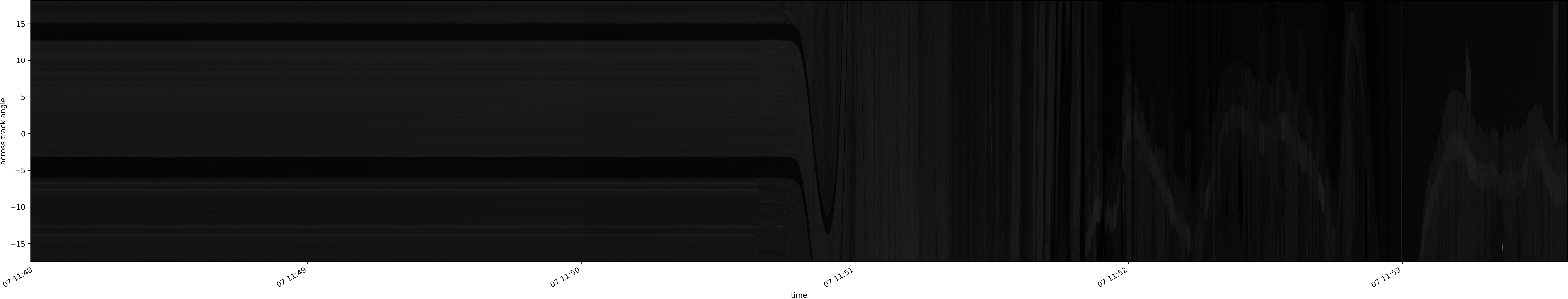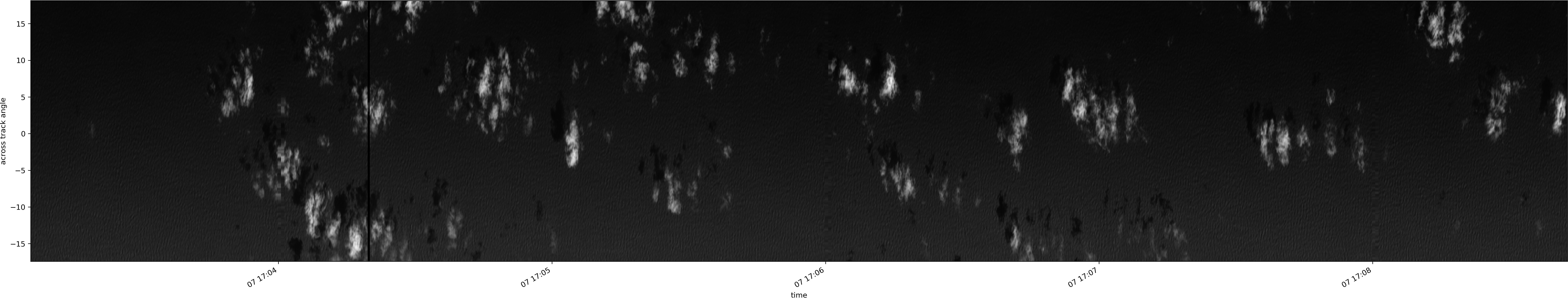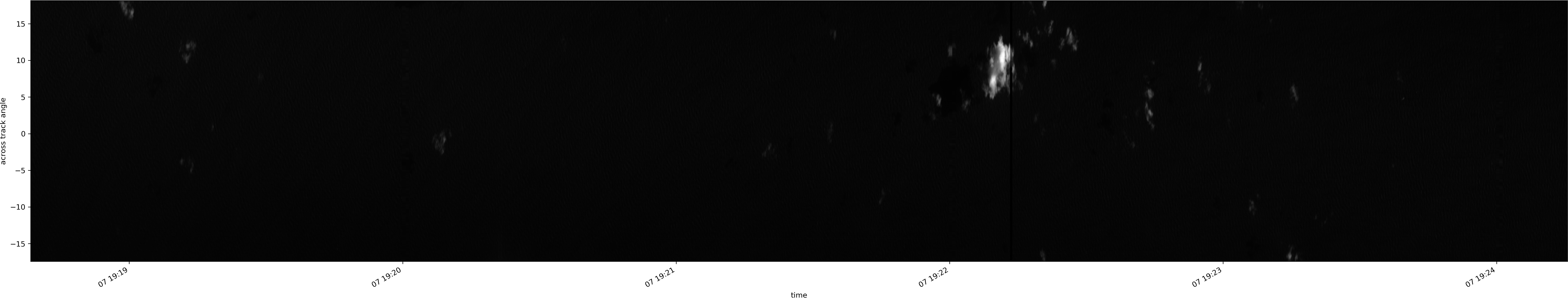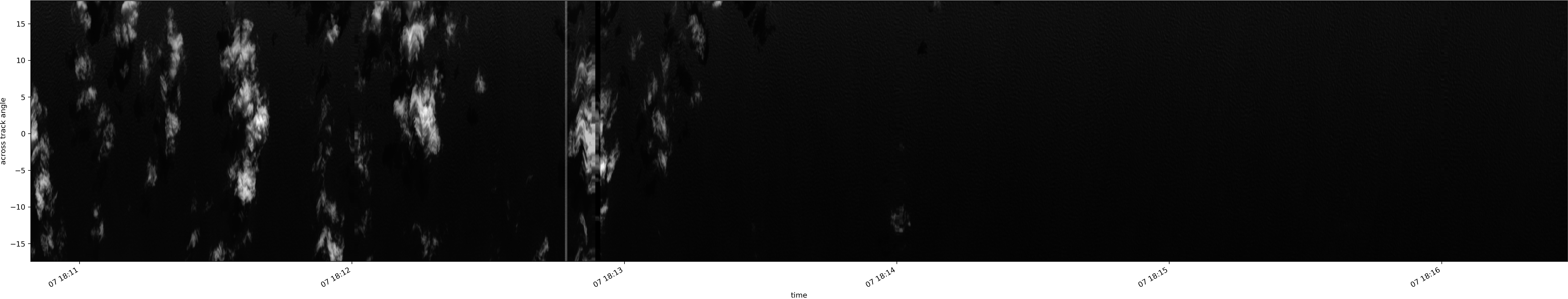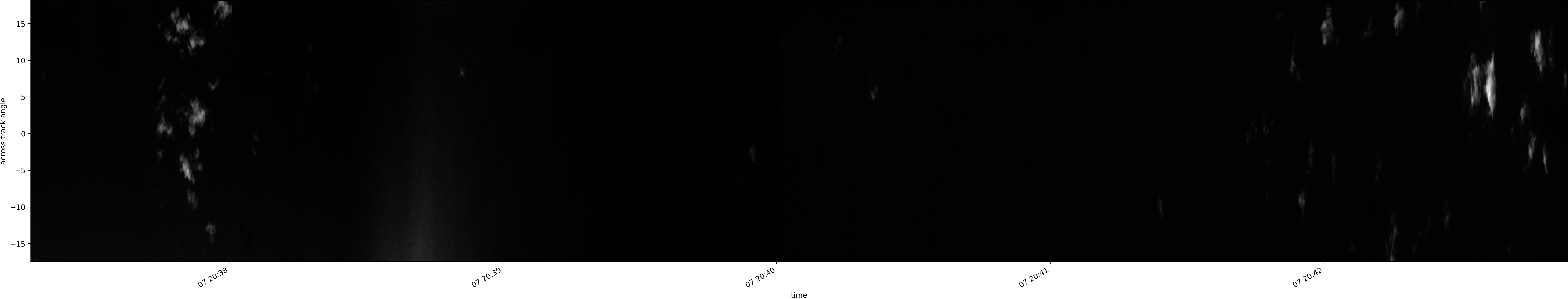 Note that due to the scanning nature of the sensor, the across-track axis is angular resolved while the along-track axis (time-axis) is linear along the flight track.