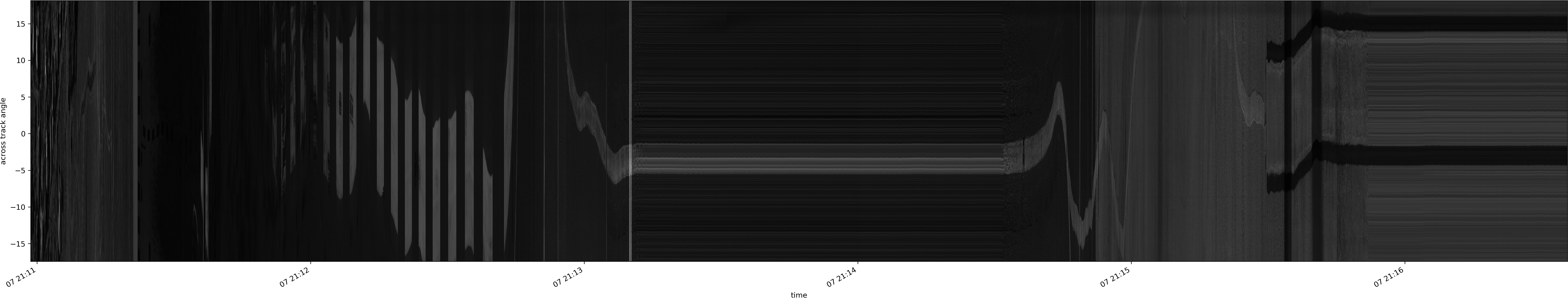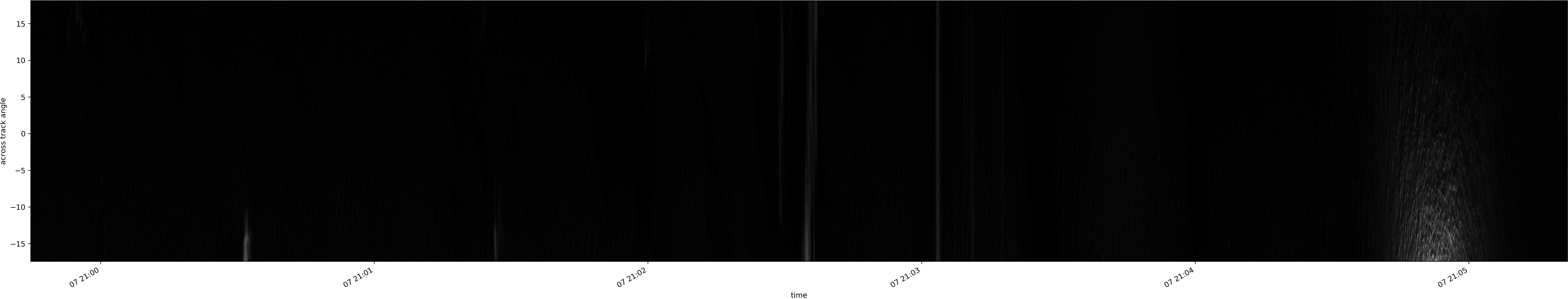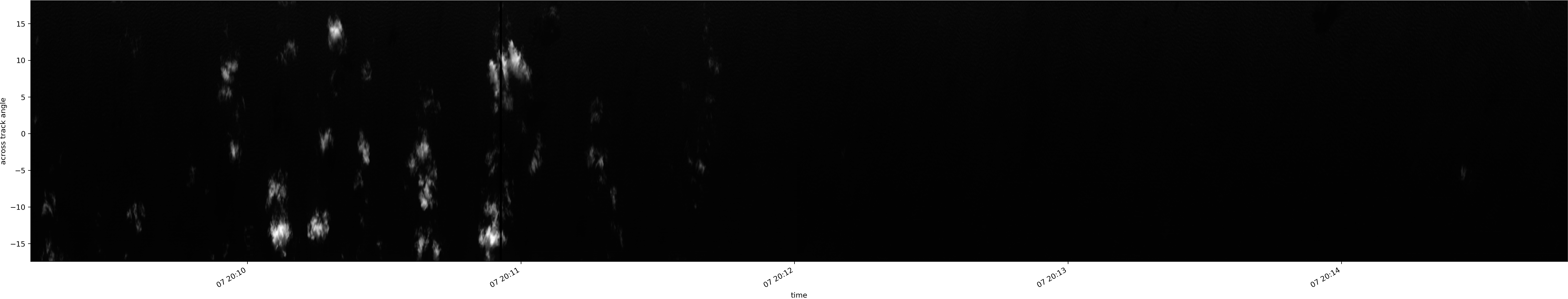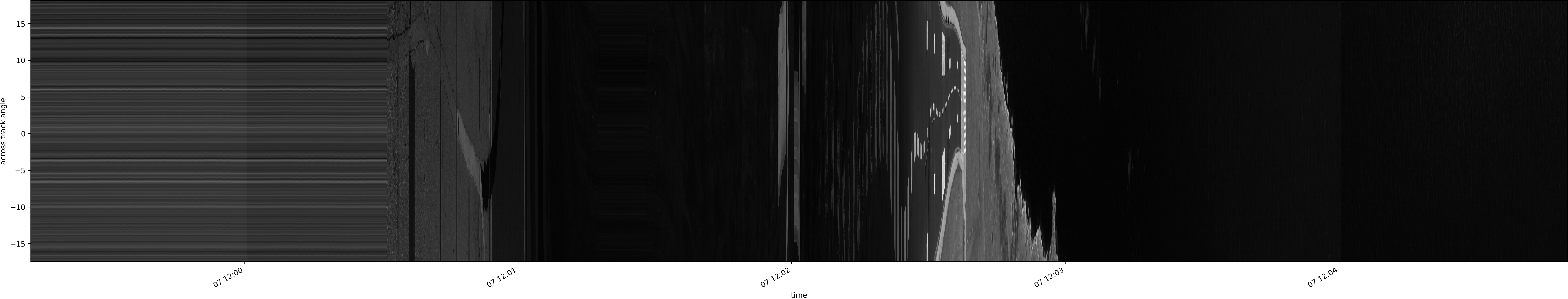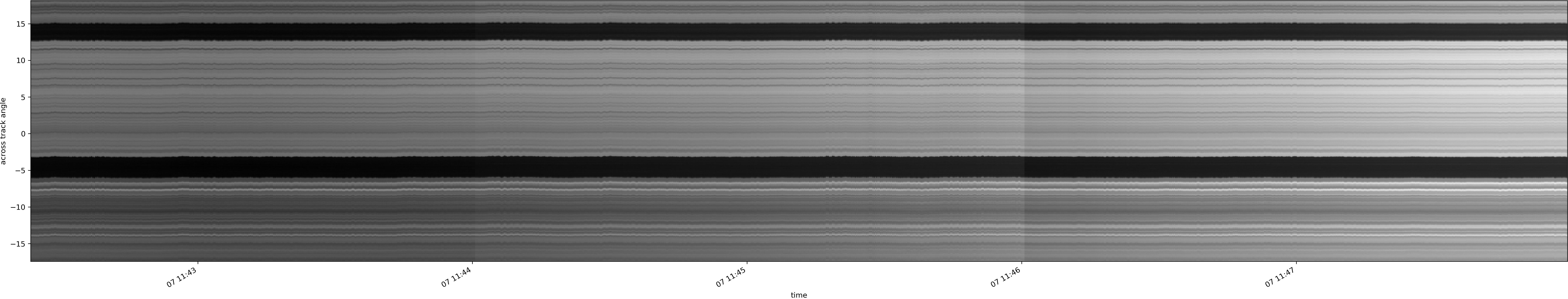 Note that due to the scanning nature of the sensor, the across-track axis is angular resolved while the along-track axis (time-axis) is linear along the flight track.