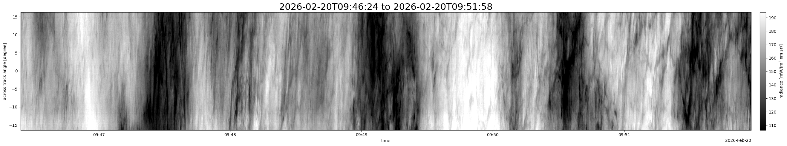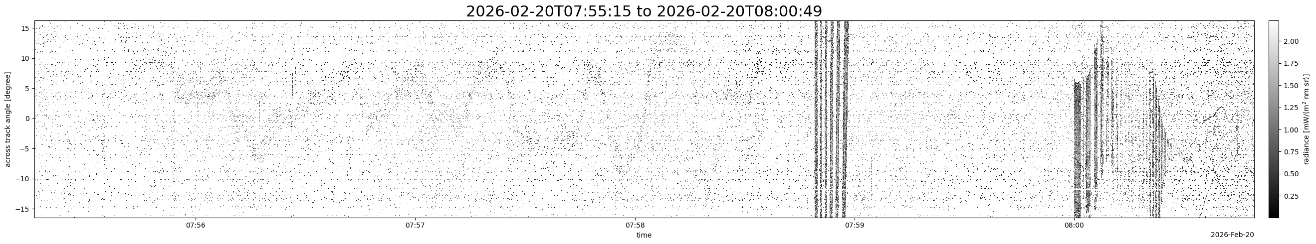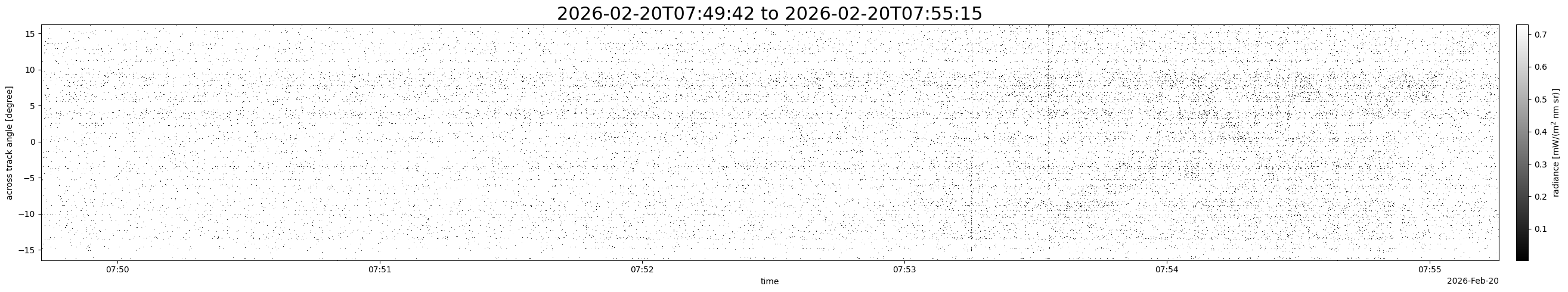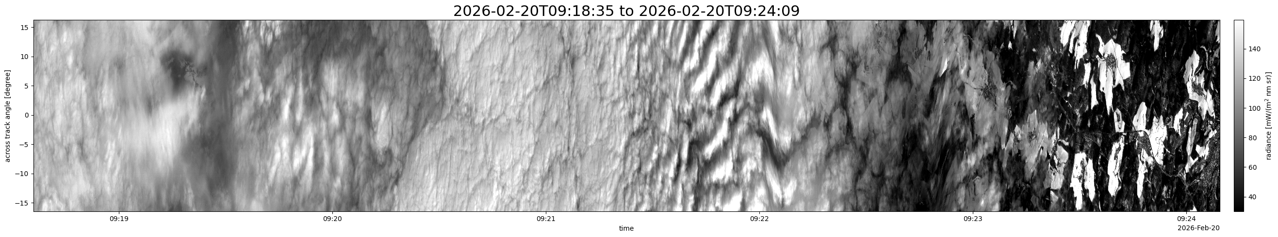 Note that due to the scanning nature of the sensor, the across-track axis is angular resolved while the along-track axis (time-axis) is linear along the flight track.