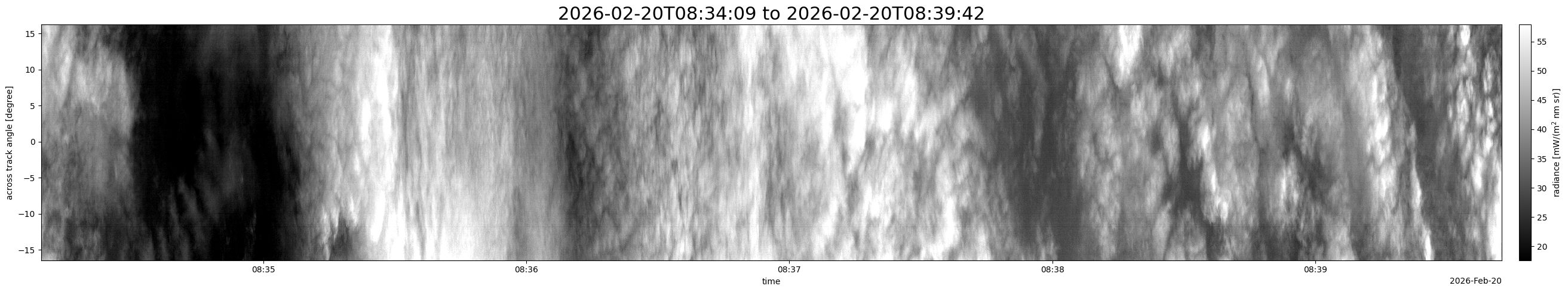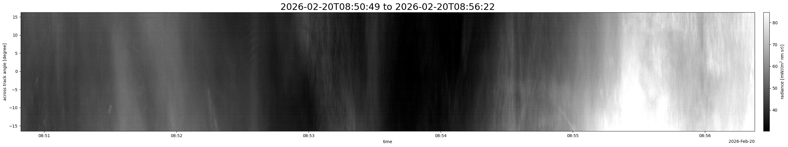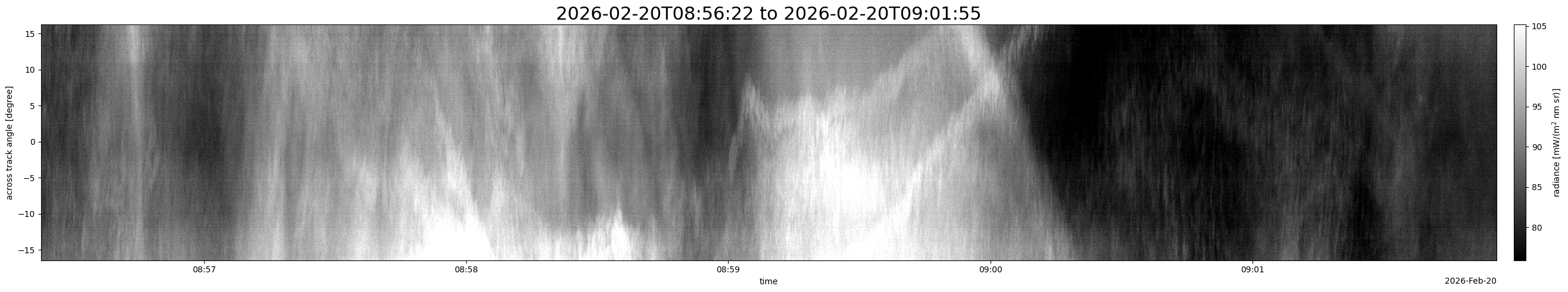 Note that due to the scanning nature of the sensor, the across-track axis is angular resolved while the along-track axis (time-axis) is linear along the flight track.