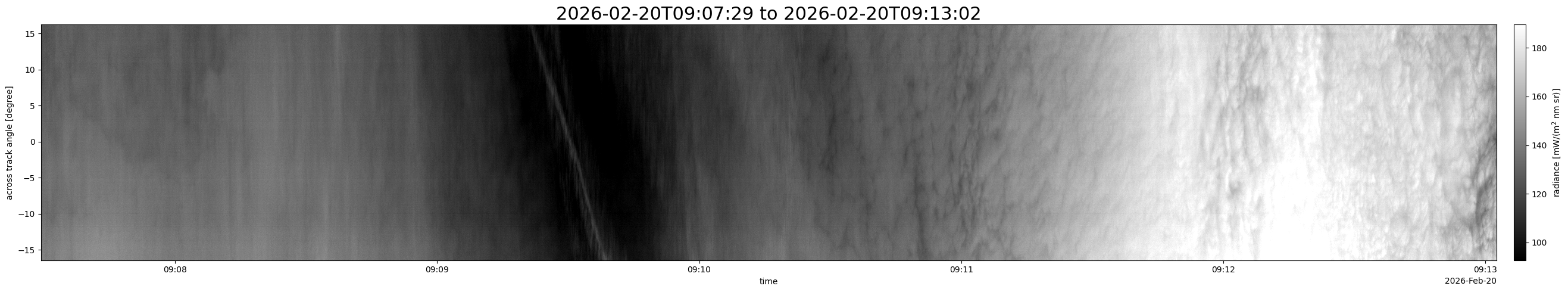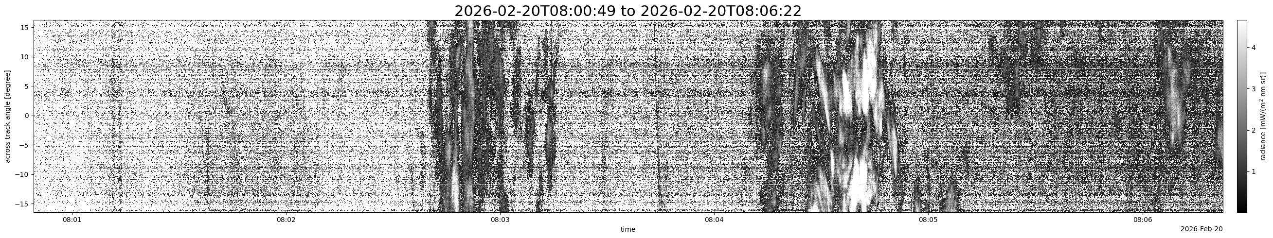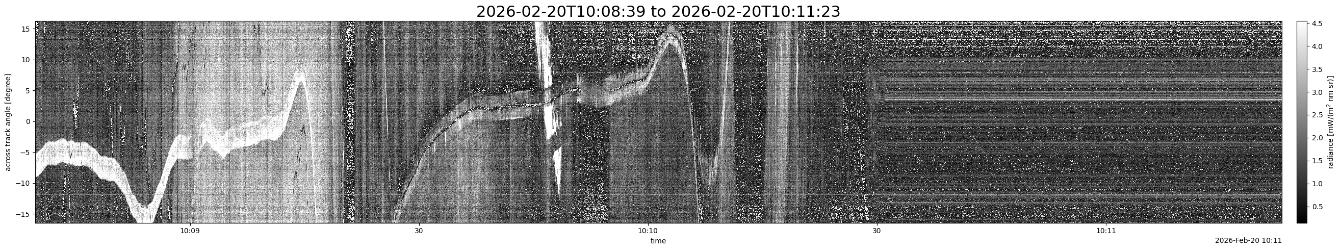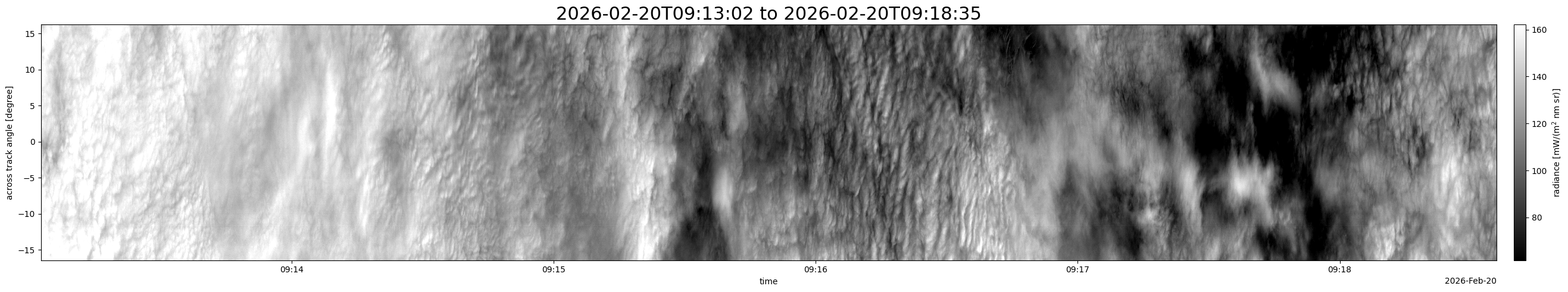 Note that due to the scanning nature of the sensor, the across-track axis is angular resolved while the along-track axis (time-axis) is linear along the flight track.